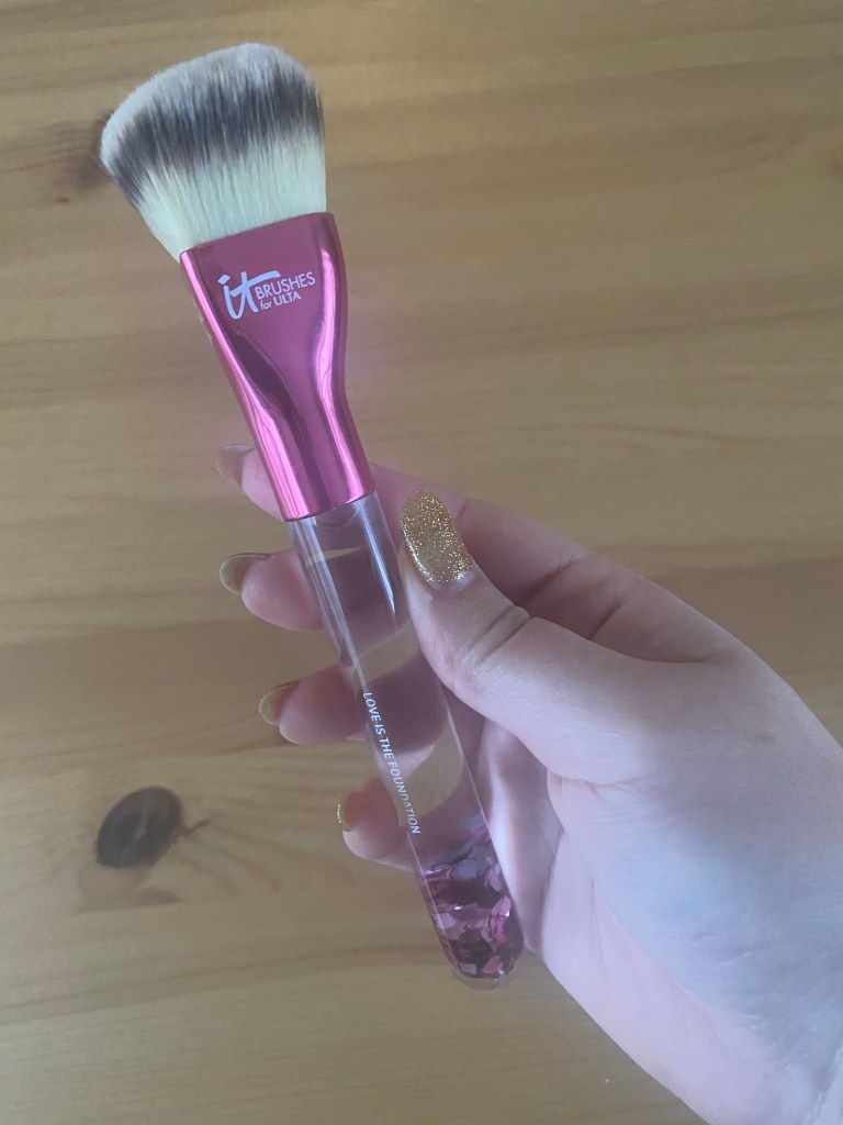 I hemmed and hawed over whether to include this makeup brush or not because you can no longer buy it but ultimately decided to include it because Ulta and itCosmetics bring out a new edition of this brush every year. First of all this is most definitely the most beautiful makeup brush I own. You can’t tell in the above photo but the brush itself is shaped like a heart. The sparkles at the bottom of the handle also move around in the liquid of the handle for a gorgeous glitter effect. It is technically considered a foundation brush but it is so versatile that I use it to apply pretty much all my face products. It’s really great for my cream blush and cream highlighter. This special edition makeup brush collab the two companies do every year benefits Look Good, Feel Better a program that helps women “face the effects of cancer treatments with confidence.”